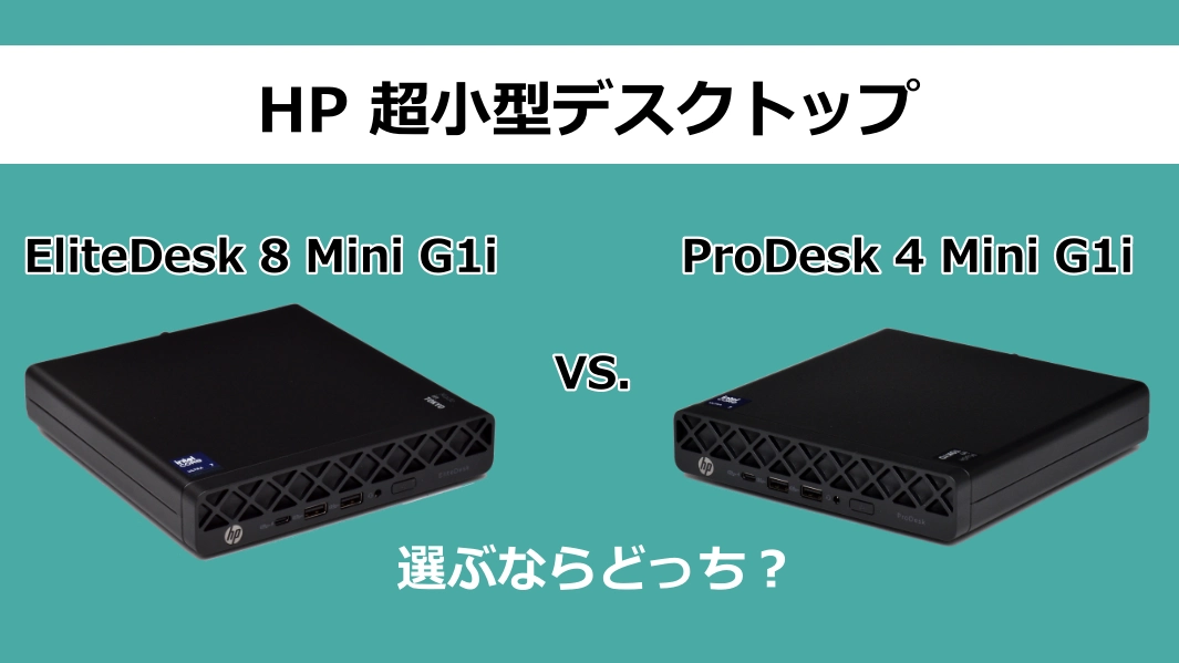 日本HP の「EliteDesk 8 Mini G1i」と「ProDesk 4 Mini G1i」は、同じ筐体デザインを採用し、同等スペックの搭載も可能ながら、グレード(シリーズ)が異なる超小型デスクトップです。