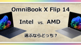 OmniBook X Flip 14-fk(AMD)もセール対象ですが、処理性能は OmniBook X Flip 14-fm(インテル)が優位。パフォーマンスモデルにはアクティブペンが標準で同梱されます。